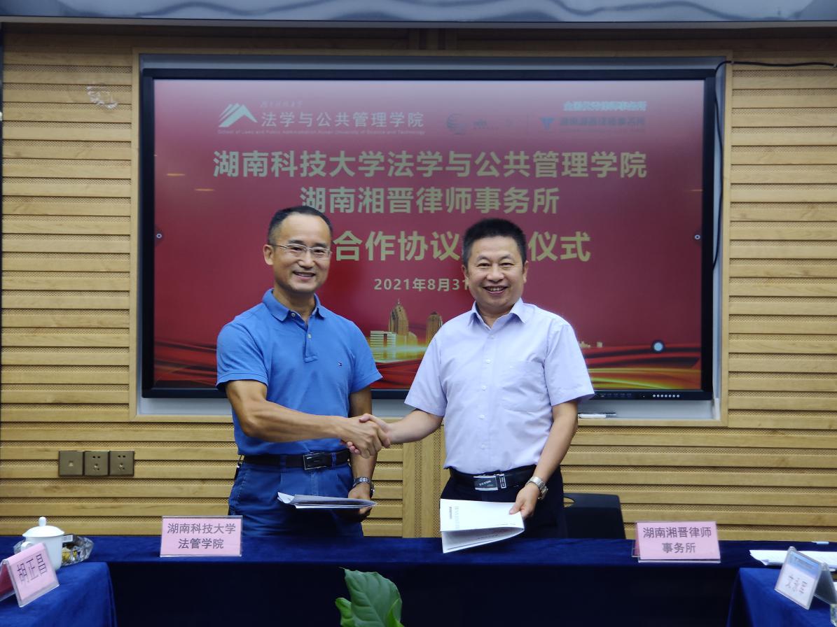 座谈会后举行的签约仪式上,徐德刚院长和文永康主任分别代表湖南科大法管学院与湘晋所正式签署战略合作协议。协议中体现了双方达成的共识:共同培养出更多优秀的法律人才,共同推进法治建设,双方将主要在人才培养、案例研究、公益活动、业务培训等领域开展有效且广泛的合作。
