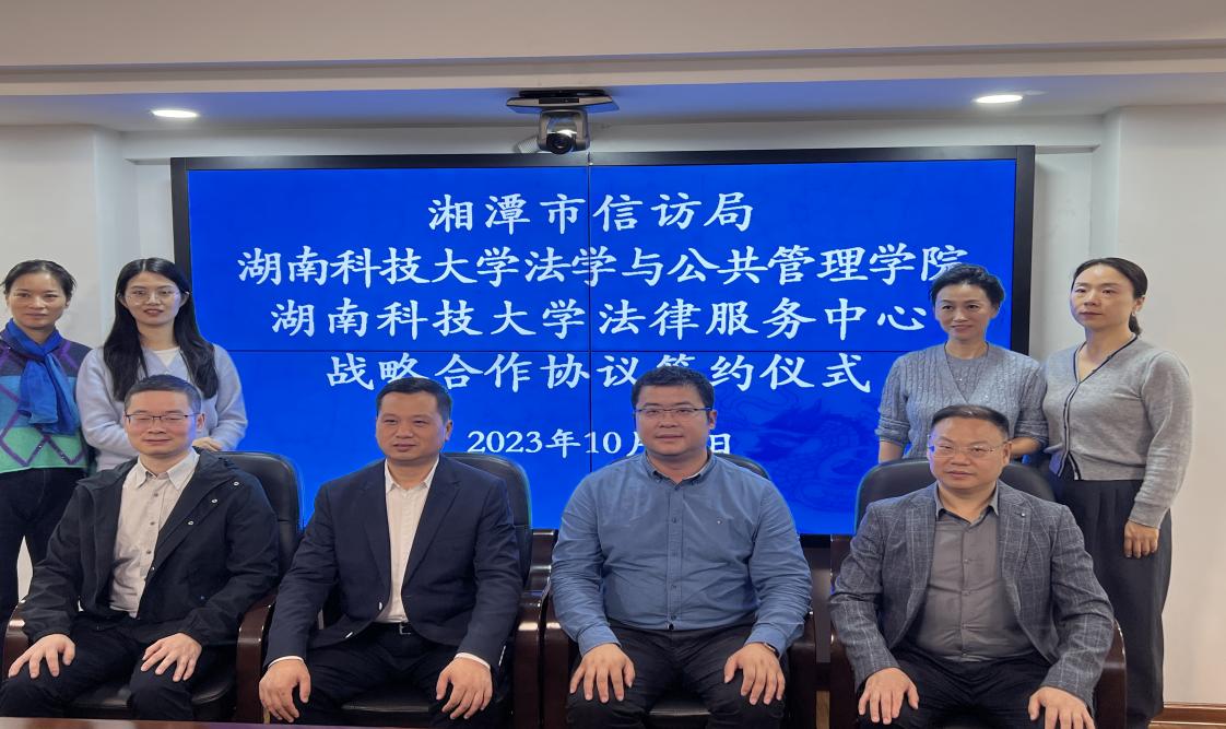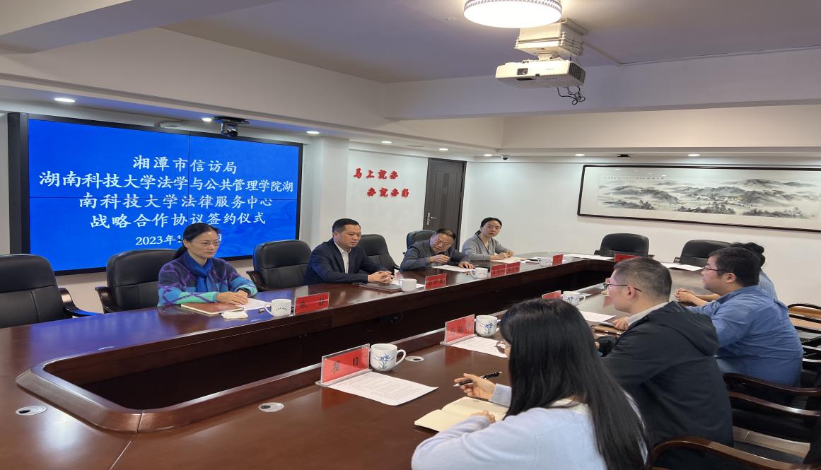 2023年10月10日下午,学院与湘潭市信访局战略合作协议签约仪式暨学生实践基地授牌仪式在湘潭市信访局举行。湘潭市信访局党组成员、副局长彭积春、信访局督查科科长、四级调研员王志雄、信访局接访科科长、四级调研员张静、信访局政策法规科科长徐慧湘等,bevictor伟德官网院长邱帅萍教授、法律服务中心主任马驰升、法律援助中心负责人陈小杉、教师代表瞿目等一行参加了本次签约授牌仪式;仪式由湘潭市信访局王志雄科长担任主持人。