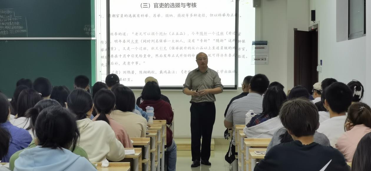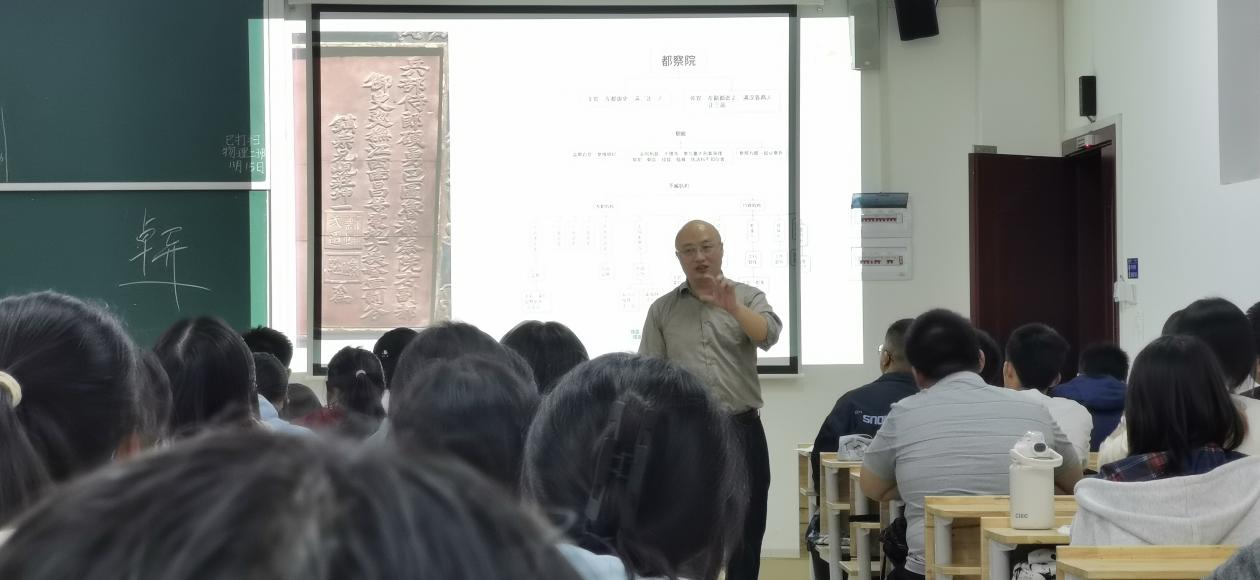 在这堂课上,刘鄂副教授主要讲解中国古代官吏的选拔与考核,剖析与之相关的法律制度。在讲解过程中,他结合史料或文物照片展开义理考证,同时,通过穿插历史人物故事来增强课程内容的趣味性,让听众能够直观了解其古今演变的历史。一堂课下来,同学们纷纷表示,刘老师上课一直抓着听众的注意力,深入浅出,让人意犹未尽。