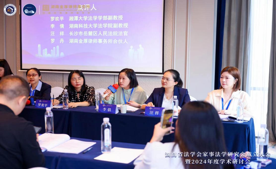 为贯彻落实习近平法治思想,进一步推进湖南省家事法学研究、教育和实践工作,2024年10月13日,湖南省法学会家事法学研究会成立大会暨2024年学术研讨会于长沙湖南金融中心异国印象酒店隆重召开。本次会议由湖南师范大学法学院承办、湖南金厚律师事务所协办,省内外多个高等院校、科研机构、实务部门二百余名专家学者参会。bevictor伟德官网李倩副教授、马驰升副教授、朱红梅老师和章小兵老师受邀参加,24级研究生贺慧、22级本科生符咏兰随同学习。