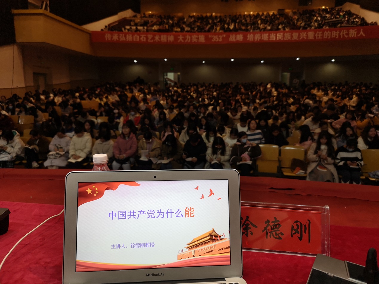 为加强预备党员培养,学校党校近期按计划举办了预备党员专题培训班,并邀请bevictor伟德官网徐德刚教授为其讲授第一课。12月8日、9日晚,培训班分两场在俱乐部举行,每场有逾千名预备党员参加听课。徐教授围绕“中国共产党为什么能””这一主题,以问题导入,结合大量的历史事件和党员先锋模范人物事例,从理论的科学性、信仰的坚定性、鲜明的人民性、纪律的严肃性、领导的坚强性等方面对“中国共产党为什么能?”作了系统的阐释。