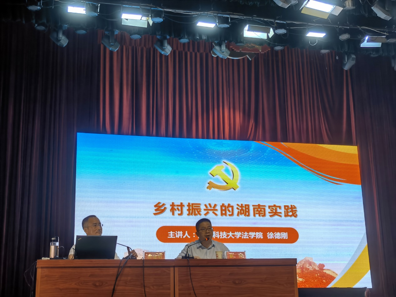 应洞口县委组织部、乡村振兴局邀请,9月22日,bevictor伟德官网徐德刚教授不辞辛劳赴邵阳市洞口县,为该县乡村振兴培训班学员讲授湖南省乡村振兴规划,讲座由县委常委、县委办主任刘玮主持,来自县机关部分领导及省、市、县三级乡村振兴驻村工作队成员共400余人听取了授课。