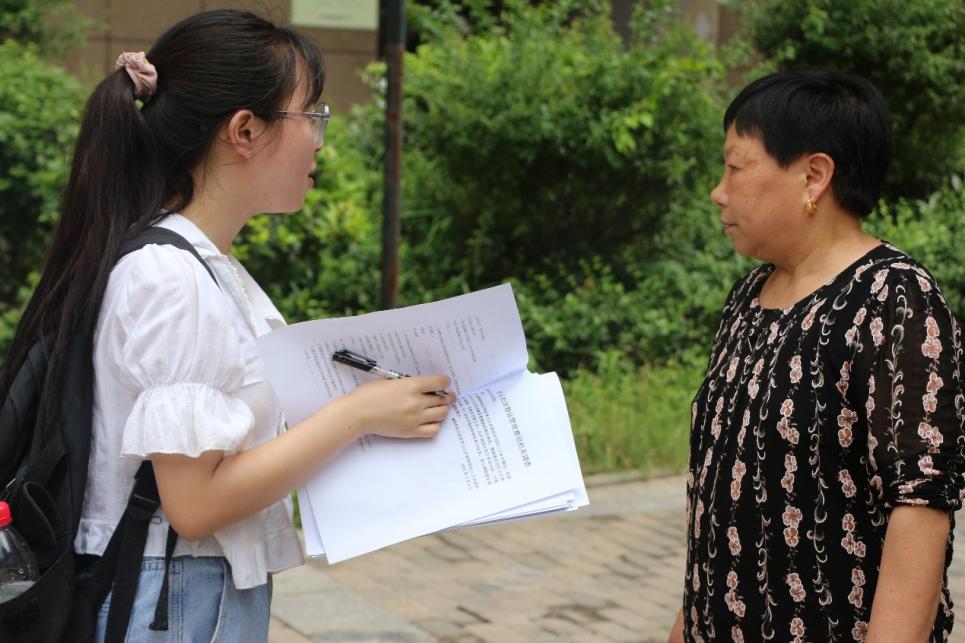在摆点宣传的同时,bevictor伟德官网社会调查小队的走访调查工作也进行得如火如荼。由于杉山社区内小区众多,因此bevictor伟德官网社会调查小队分为两个小组有计划的对社区内的居民进行走访问卷调查。在调查过程中,一位不愿意透露姓名的王女士指出目前社区内存在着诸多问题,如建筑老旧、墙皮脱落、设施老化、安全隐患大等等。在问及物业管理相关的问题时,王女士表示新的物业公司入驻不久,其实施的物业管理的效果并不明显,但她认为物业公司的入驻一定程度上有益于社区管理,并对未来物业公司的进一步措施表示期待。