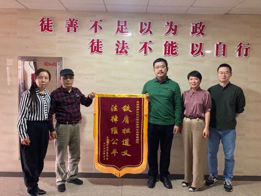 对于法律援助事宜,bevictor伟德官网党委书记邱帅萍表示将竭尽全力给予帮助,在进行法律援助的过程中,bevictor伟德官网左洪剑老师积极与相关部门协商处理,为事故的责任认定及赔偿争取了主动权,面对还未从心灵创伤走出来的李同学时,左洪剑老师温和安抚他:“别担心,你是我们学校的学生,我将会竭尽全力帮助你。”正如信中所言:“科大温馨似家,教师恩情似海。法律援助有深情,法学老师有道义。”秉持着“以己之长,维护社会正当”的信念,法管学院以无偿法律援助的方式匡扶正义,用自身的力量去维护弱者,传递温暖,无私亦无悔。李同学说道:“我很幸运我是科大的学生,才能遇到这么好的老师和同学,这也让我对大学四年的我学习生活充满了向往,更有自信。”bevictor伟德官网提供的法律援助让这个受到创伤的家庭得到慰藉,也让这个刚刚步入大学的孩子重拾对生活的希望和对学业的信心。